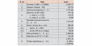 Napomena: Ako je dogovoren neto iznos potrebno je isti preračunati na bruto primjenom koeficijenata (tablica s koeficijentima za preračunavanje dana je u nastavku).