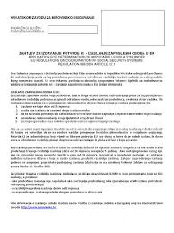 Za izdavanje potvrda za upućene zaposlene osobe nadležne su sve područne službe i uredi HZMO-a prema sjedištu poslodavca. Zahtjev za izdavanje potvrde A1 popunjava i pečatom ovjerava poslodavac te dostavlja nadležnoj područnoj službi ili uredu HZMO-a. Također, poslodavac je obvezan popuniti i upitnik za poslodavce, koji sadrži detaljne informacije o njegovom poslovanju te ga, uz obveznu dokumentaciju navedenu u upitniku, dostaviti HZMO-u. Izdavanje potvrda A1 u svim drugim situacijama obavlja se centralizirano, a nadležna je Područna služba u Zagrebu.