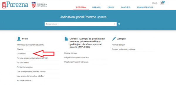 Na Početnoj stranici s lijeve strane kliknite na označeni dio Ovlaštenici.