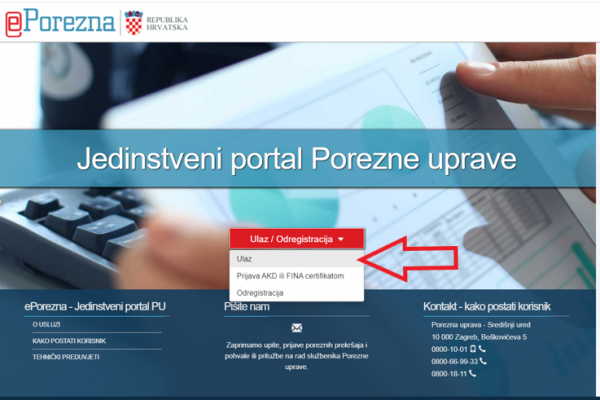 Na internetskoj adresi E-porezne u navedenom slučaju ulazi se u kroz prikazani dio naziva ULAZ.
