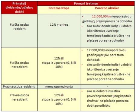 Od 1. ožujka 2012. isplata dividende i udjela u dobiti podliježe oporezivanju porezom na dohodak od kapitala, odnosno porezom na dobit po odbitku.
