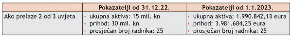 Osim kako je navedeno u tablici, za razvrstavanje u subjekte od javnog interesa ZOR propisuje brojne kriterije, od kojih je jedan iznos aktive. Predloženo je da se svota od 5.000 mil. kuna zamijeni svotom od 663.614.042,07 eura.