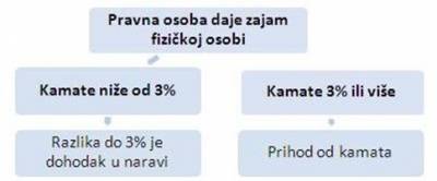 Stoga, kod davanja pozajmica fizičkim osobama od strane pravnih osoba, najuputnije je ugovoriti kamate u visini 3% godišnje (ili više), i tada nema obveze utvrđivanja oporezivih primitaka fizičke osobe. Pravna osoba će po osnovi obračunatih kamata iskazati prihode od kamata.