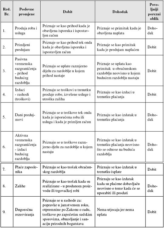 Različito utvrđivanje (priznavanje) poreznih osnovica za iste poslovne promjene (ekonomske transakcije) u poreznim razdobljima može u vrijednosnom smislu biti značajno, pa onda može doći i do različitog poreznog opterećenja.